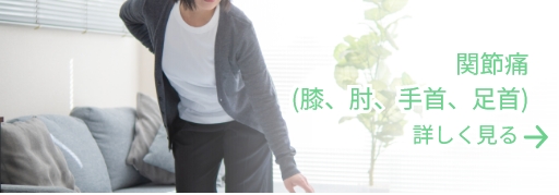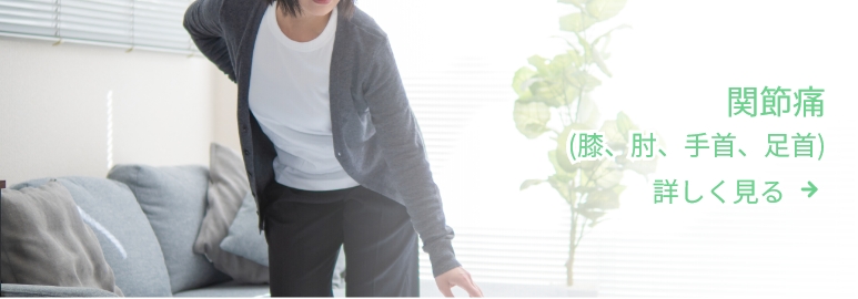 関節痛は、膝・肘・手首・足首などの関節に痛みや違和感が生じる症状です。