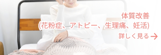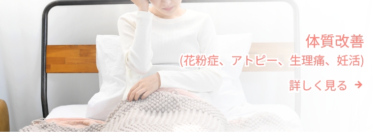 花粉症やアトピー、生理痛、妊活などの不調は、体内環境の乱れが大きく関係しているため、体質を見直すことで症状が和らぐことが期待できます。
