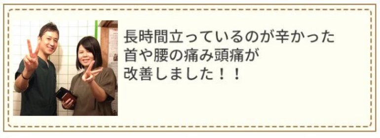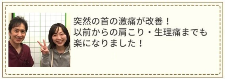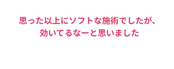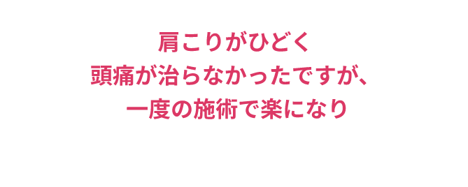 肩こりがひどく頭痛が治らなかったですが、一度の施術で楽になり、気持ちも前向きになりました!