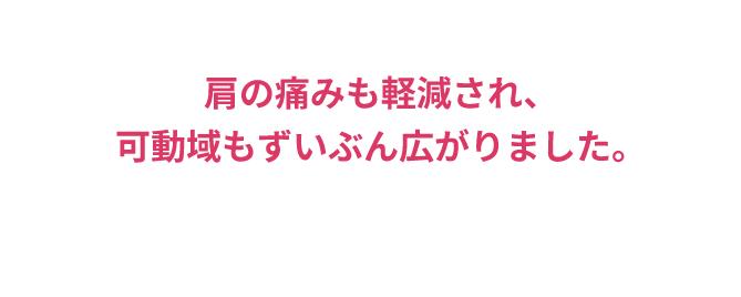 実際、通院するうちに肩の痛みも軽減され、可動域もずいぶん広がりました。